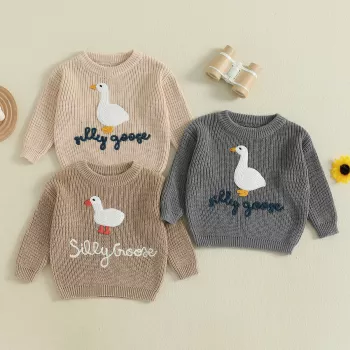 Toddler Baby Goose Embroidered Knit Sweater – Cozy Fall & Winter Pullover