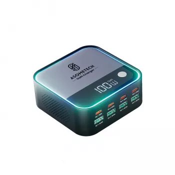 100W 8-Port GaN Desktop USB-C & USB Fast Charger with Ambient Light Display