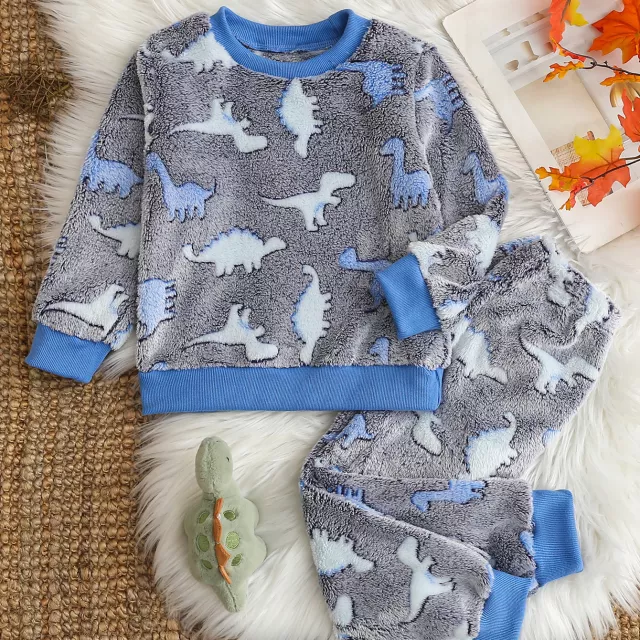 Warm Flannel Dinosaur Print Boys’ 2-Piece Set